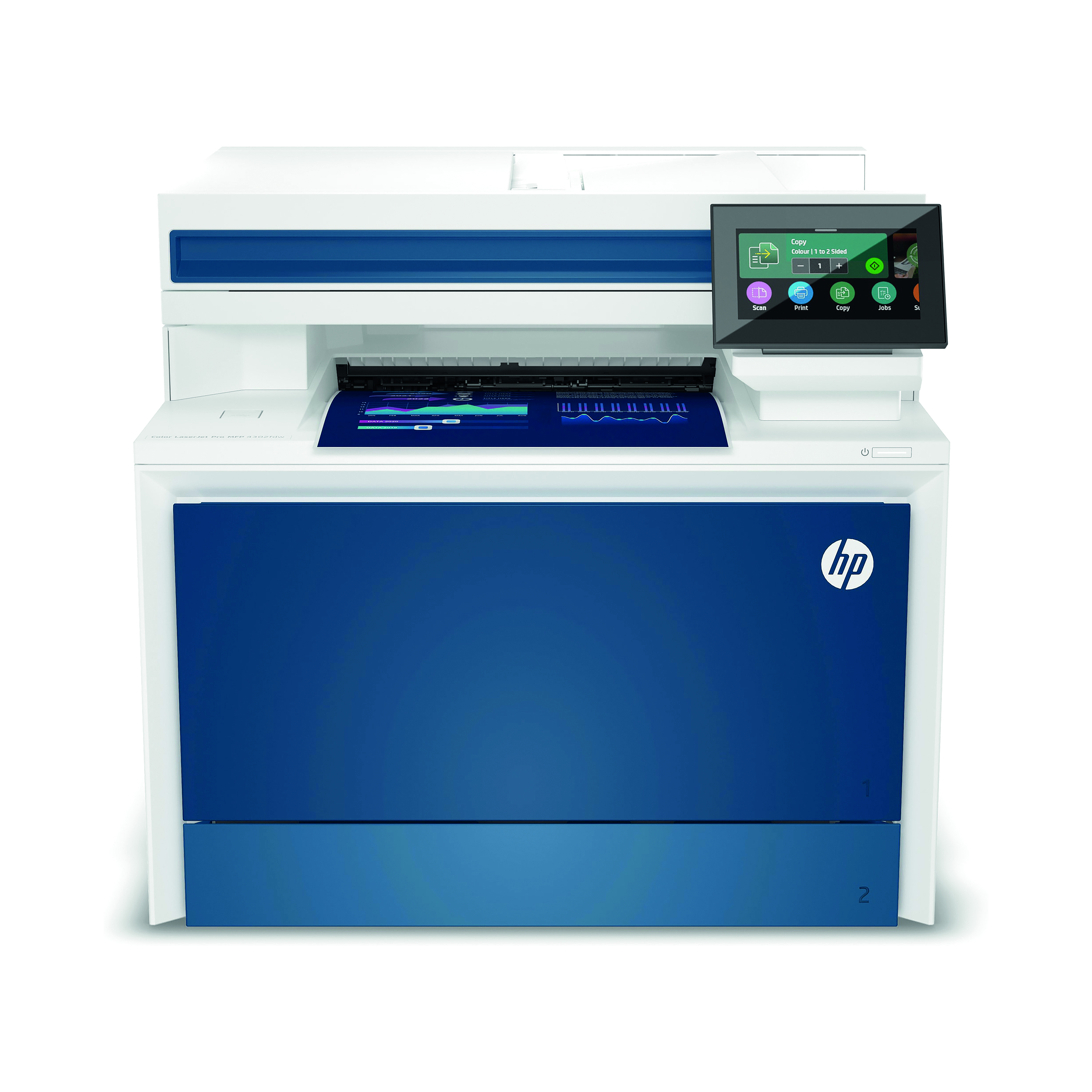 - Wireless colour laser printer with print, copy, scan and fax functions